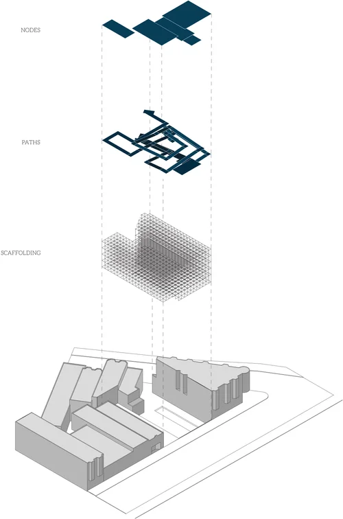 The aggregation and disruption of the gridded units reflects the consequences of the Bakken Pipeline, invoking a larger discussion about architecture's role in displacement, not only of people and space, but also intangible dimensions of the human condition (regarding social, political, economical, and environmental conditions). The disruption of land and the displacement of people as a result of energy infrastructure construction is a global issue. It is crucial to understand the spatial effects of these types of displacements, as they will need to be addressed by citizens of the future.